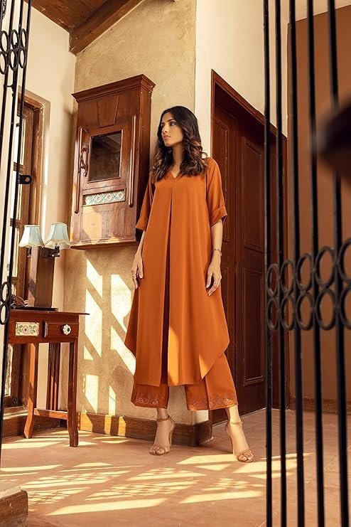 • Flattering A-Line Fit: Designed with a graceful A-line kurta and well-fitted pants, this co-ord set enhances your silhouette while ensuring freedom of movement.